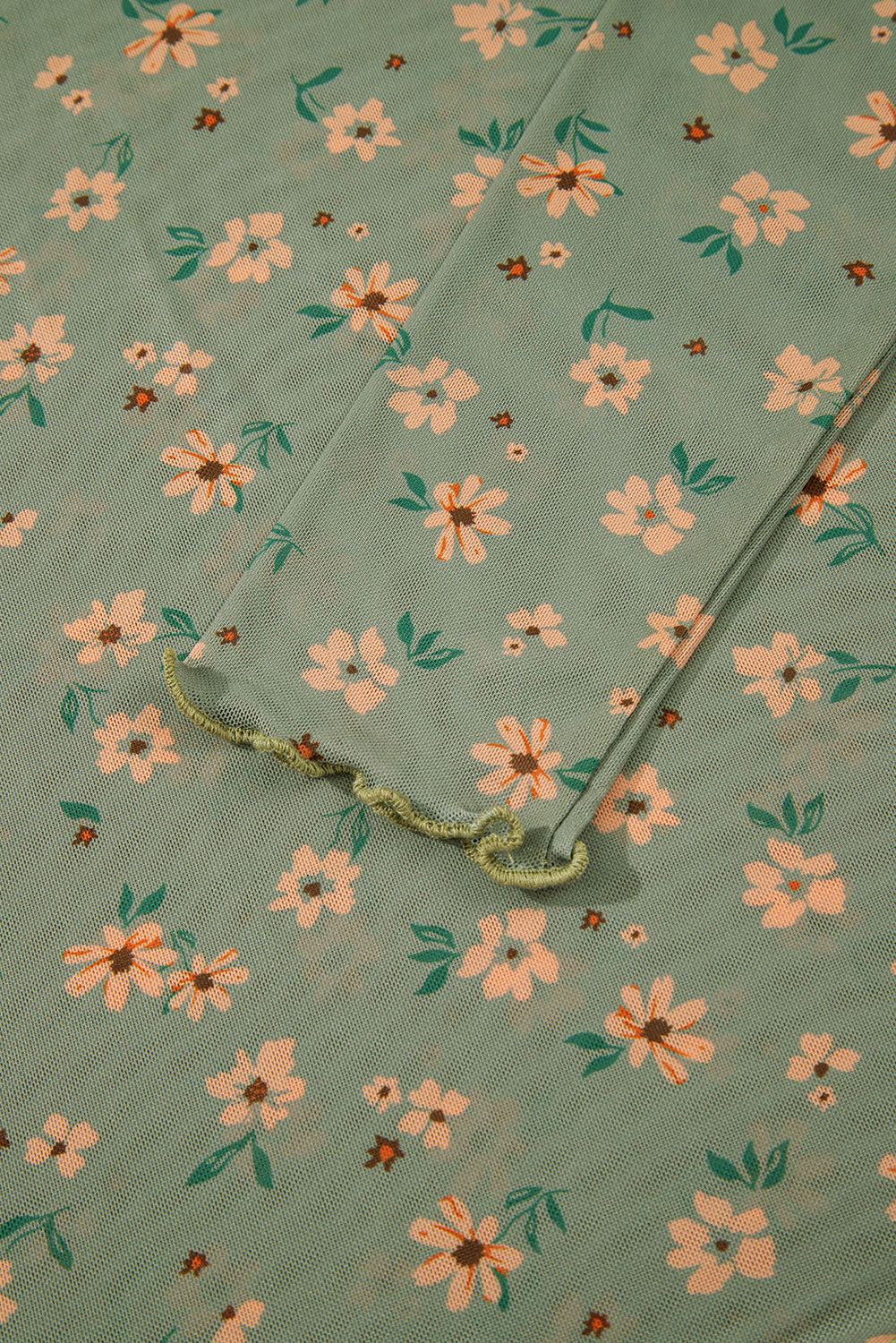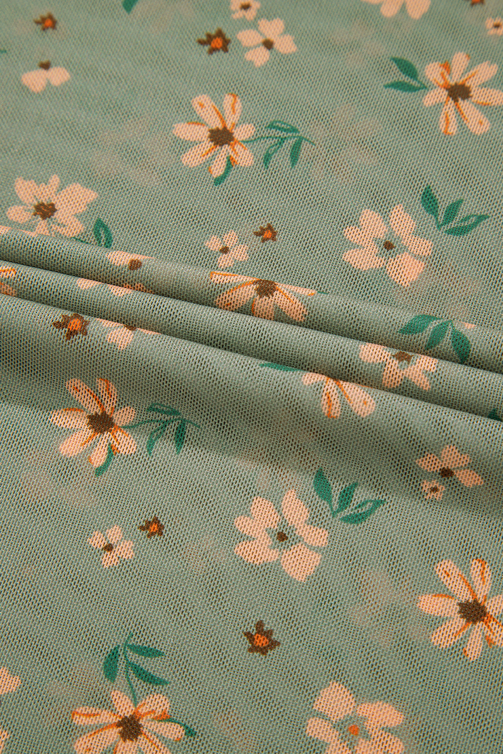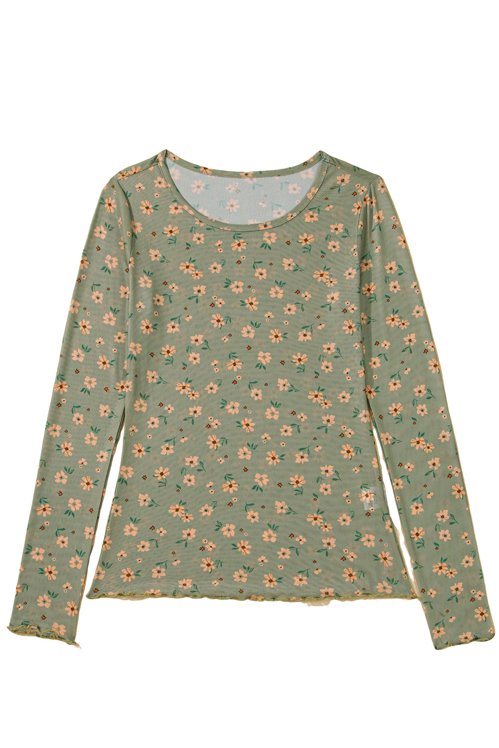 Sky Blue Floral Print Mesh Slim Fit Long Sleeve Top